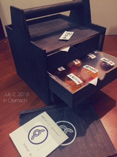 すっごくめずらしいお菓子の箱!中から出前のラーメンが出てきそうな箱の中からお菓子の引き出しが3段!!感動です!つい目がキラキラしてしまいました(◕∀ ◕`ヽ)。・♪