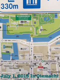 歩いていたら道中によく見かける地図が。一瞬通り過ぎかけたときに、「帰宅困難者避難場所」の文字が目に入りました。どうやら皇居は単なる「避難所」ではなく「帰宅困難者避難場所」という名前らしいです。